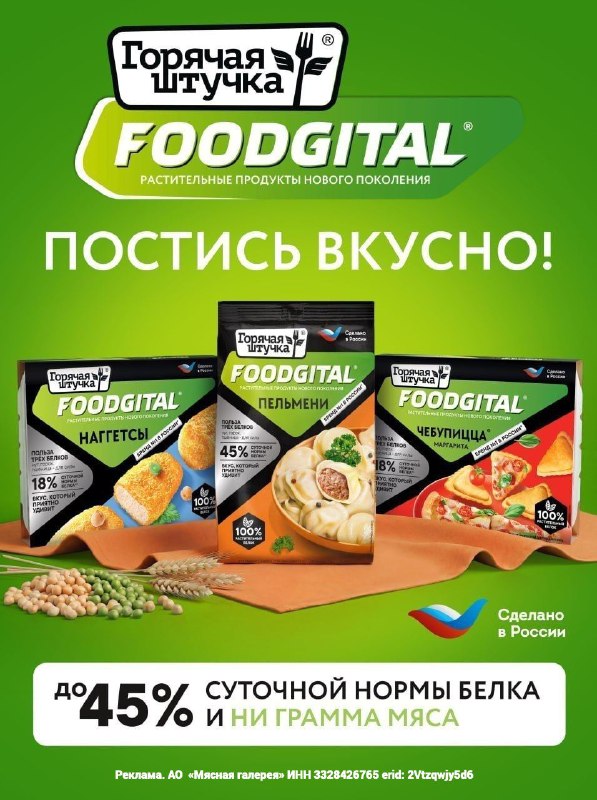 Постись вкусно с растительными продуктами Foodgital от Горячей штучки! 100% растительный белок и уникальная рецептура делают продукты Foodgital такими же насыщенными по вкусу, как и привычные мясные