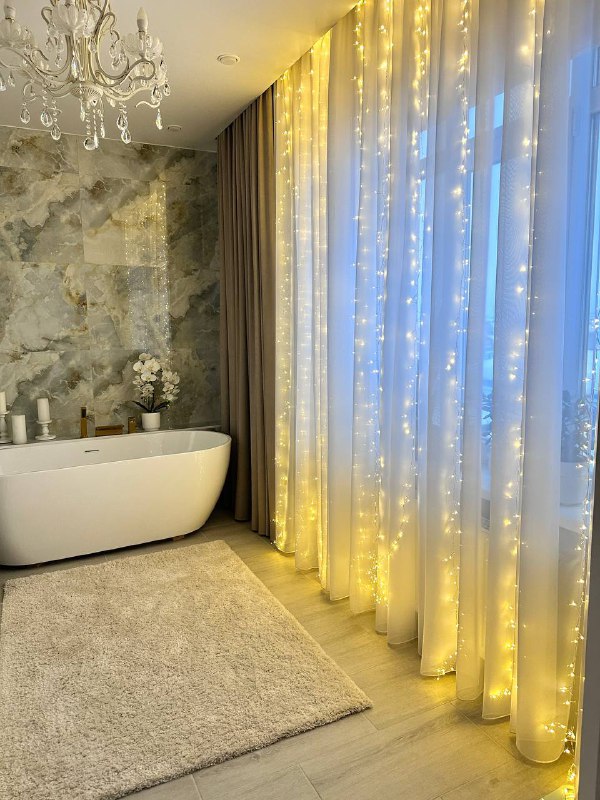 ❤️Волшебное преображение 🛀делюсь с вами, как преобразилась ванная комната: ☑️повесила тюль и шторы ☑️повесила гирлянду "роса-мишура" ☑️постелила новый ковер. Он большой, пушистый, мягкий так приятн