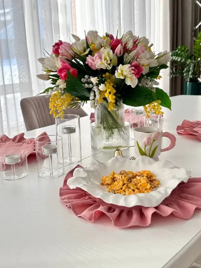 ☀️Всем весенний солнечный привет 👍Делюсь обновочками для дома 🌸Купила красивые розовые салфетки с рюшами Отлично подойдут для сервировки 🌸Красивую белую тарелку , интересной формы . Просто во