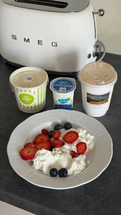 первый завтрак на новом месте, доброе утро 🤩 🤩 у меня в холодильнике всегда есть фермерский творог из @ecomarketru , он подходит и для соленных блюд и для сладких, и просто так его съесть одно удов