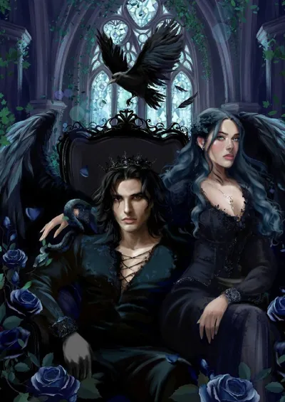 Арт от прекрасной Лаванды Lavenderqueen по моей новинке, ретеллингу Красавицы и Чудовища в жанре готического ромэнтези "Чёрное сердце фейри"!!!🖤🖤 Принц неблагих фейри Бран и лунная ведьма Кара🌫️