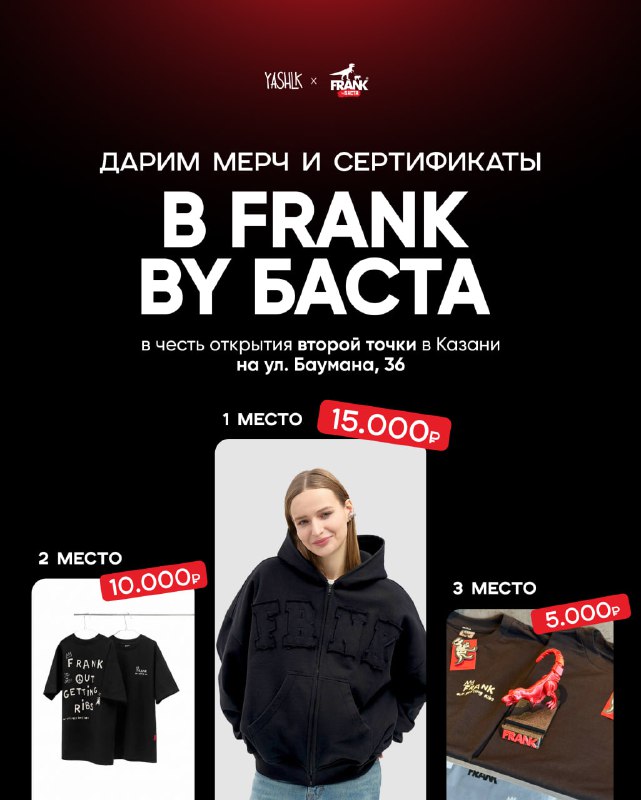 Дарим мерч и сертификаты в FRANK by БАСТА Совсем недавно рёберная от Басты открылась в Казани на Петербургской. И за очень короткое время место уже успело полюбиться горожанам. Настолько, что команда