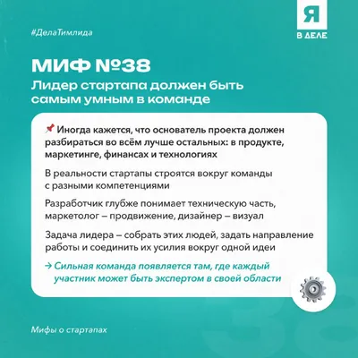 🧠 Есть распространённое представление: — если ты лидер стартапа, нужно знать всё лучше остальных Разбираться в продукте, маркетинге, финансах, продажах и технологиях... На практике команды работаю