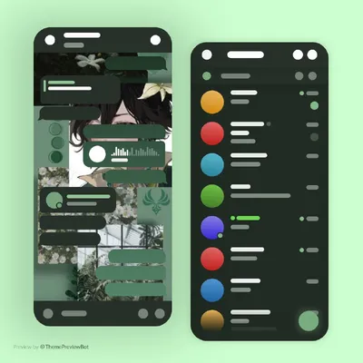 Тема "Зеленая Эстетика" 💚 Работает на Android и iOS устройствах. ➡️ https://t.me/addtheme/greena_oboiqm ⬅️ 🧺 теги: #темная #green #android #ios 🤩 бот для создания тем 🤩