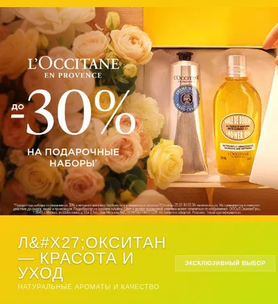 🔥Натуральная французская косметика премиум-класса Хотите побаловать себя качественными косметическими средствами? В интернет-магазине Л'Окситан (L’Occitane En Provence) найдёте всё, что нужно для ух