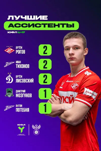 Главные распасовщики после второго тура 🅰️ Илья Храбрый за один матч ворвался в лидеры ЮФЛ U-15 🔝