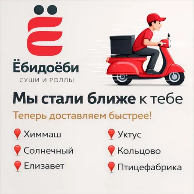 Екатеринбург, у нас отличные новости 🍣 Мы открыли 6-ю точку, а значит — расширили зону доставки и теперь будем привозить роллы ещё быстрее в районы: 📍 Химмаш 📍 Уктус 📍 Солнечный 📍 Кольцово 📍 Пт