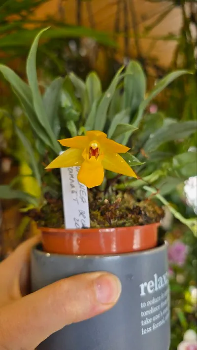 Вот такое милашество распустилось. Променея санлайт. Единственный раз встретила эту орхидею на Орхидиуме весной 2025, взяла цветущую. И вот она зацвела уже у меня. Не пахнет, не любит пересыхать.