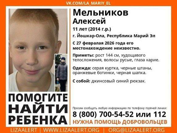 Внимание! Пропал ребёнок!! Источник: ЛизаАлерт Марий Эл Проголосовать за канал: голос! 🚀 Йошкар-Ола. Происшествия 📲Прислать новость: @yoshkachp_bot