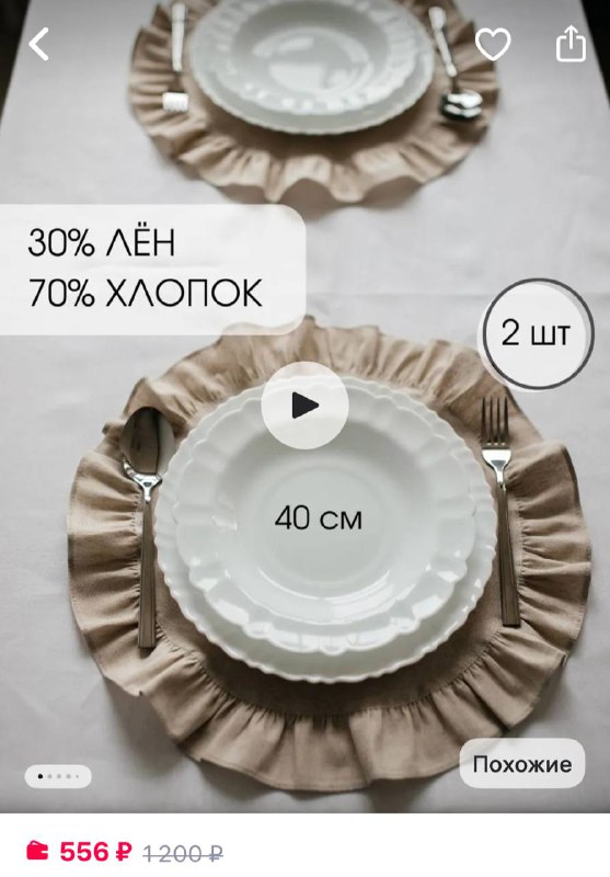 Сервировочные салфетки на стол круглые тканевые 2 шт https://www.wildberries.ru/catalog/334852242/detail.aspx?size=500427824 Рейтинг 4,9 Уют в деталях✨ и в МАХ
