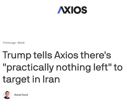 Дональд Трамп заявил, что война с Ираном может скоро закончиться, поскольку «практически не осталось целей для ударов». «Когда я захочу, чтобы она закончилась, она закончится. Война идёт отлично. Мы