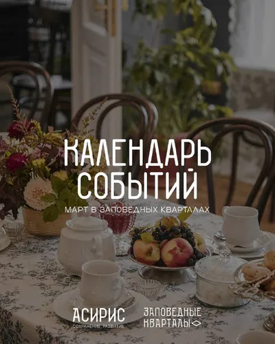 Расписание событий на март в квартале церкви Трёх Святителей Март в Заповедных кварталах обещает быть насыщенным: уютные завтраки в усадьбе, тёплые гастрономические вечера, прогулки по историческим у