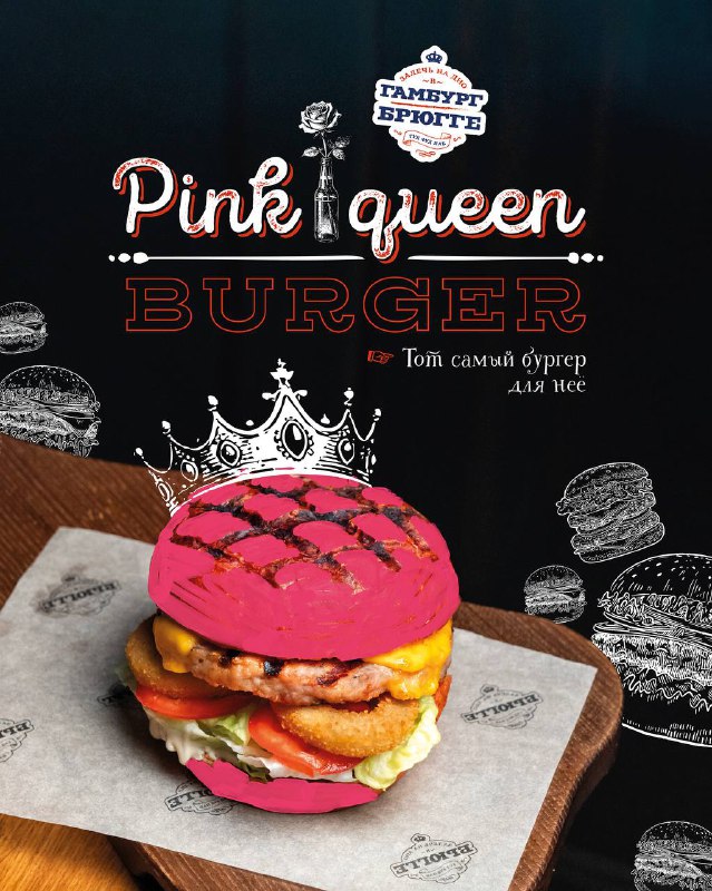 Девчонкам на 8 марта наконец-то придумали нормальный подарок Не цветы эти ваши, а мясо. Знакомьтесь: Pink Queen Burger в "Брюгге и Гамбурге". Выглядит по-девчачьи с розовой булкой, а внутри зверь: ч
