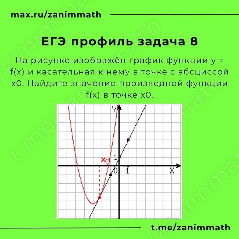 Найдите значение производной функции @zanimmath #егэ2026 #егэ2026профиль #егэ2026задача8 Учителям | Ученикам | Поддержка | Мы в МАХ