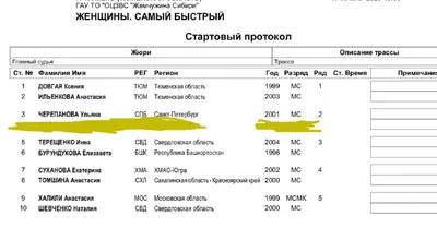 А вот и стартовый протокол нашего «кубка Матч ТВ». Забег в гору. Участников поменьше, чем у мужчин, но во-первых, оцените уровень, а во-вторых, турнир был через час после смешанной эстафеты, поэтому