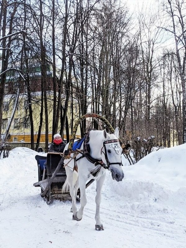 ✨ В парке «Фили» на прогулку вышла белоснежная лошадка Живописный кадр из парка: грациозная белая лошадь прогуливается по заснеженным аллеям. А вы часто бываете в «Филях»? Делитесь в комментариях.
