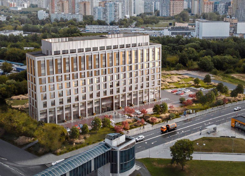🏗 Девятиэтажный бизнес-центр построят у метро "Боровское шоссе" Здание будет иметь строгую геометрическую форму и светлый каменный фасад с вертикальными металлическими вставками золотистого цвета ме