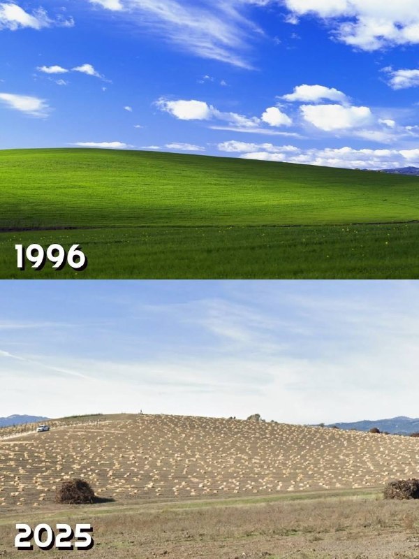 У меня есть плохая и хорошая новость! Плохая: знаменитых зеленых травяных холмов, которые были на заставке Windows — БОЛЬШЕ НЕ СУЩЕСТВУЕТ! Хорошая: теперь на них высадили виноградники! Я считаю, чт