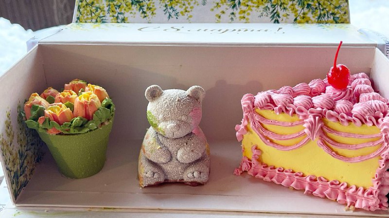 С 8 марта, прекрасные девушки😘 У меня утро началось с потрясающего подарка от ателье тортов ресторана «Восход» Специально к празднику шеф-кондитер Ольга Рыбакова два подарочных десертных набора.