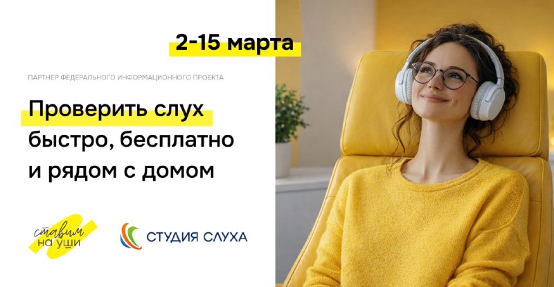 Со 2 по 15 марта проходит федеральный информационный проект, приуроченный ко Всемирному дню слуха. Мы рады сообщить, что сеть центров слухопротезирования «Студия Слуха» присоединяется к проекту уже в