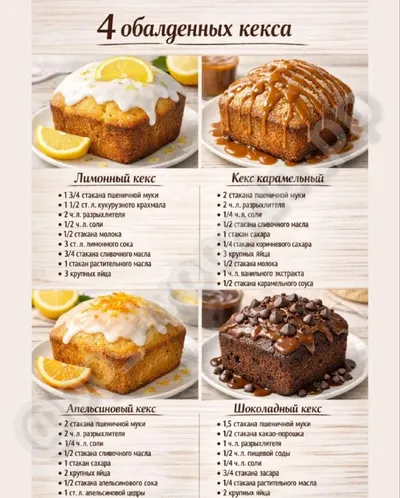 Четыре кекса — четыре настроения. Лимонный — свежий и бодрящий, с лёгкой кислинкой. Карамельный — уютный, тягучий, как плед в дождливый вечер. Апельсиновый — ароматный, солнечный, с яркой цитрусовой н