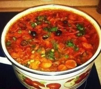 ВКУСНЕЙШАЯ СОЛЯНКА Готовим очень просто и с удовольствием: Варим бульон из мяса на кости, я беру лопатку. Бульон варю с половинкой луковицы и половинкой моркови. В это время , когда бульон варится