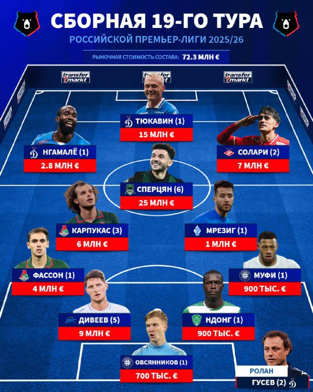 💙 Дивеев, Сантос, Мантуан и Луис Энрике попали в символическую сборную 19-го тура РПЛ от Transfermarkt, SofaScore и РУСТАТ @zenitfans