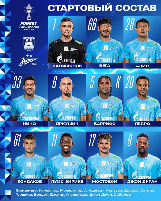 Наш состав на матч! Вперёд, «Зенит»! Вперёд за Питер!!!