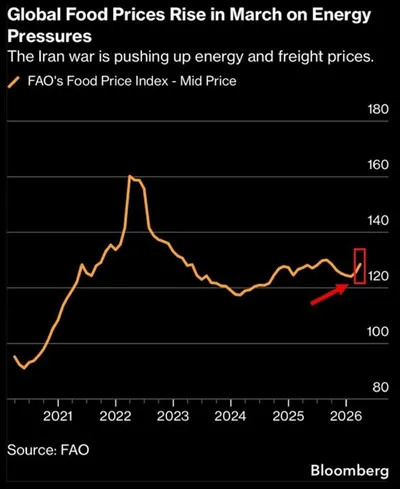 🔊В мире начали расти цены на продовольствие из-за резкого увеличения затрат на энергоносители В марте индекс мировых цен на продукты питания подскочил сразу на +2,4%, достигнув 128,5 пунктов. Это са