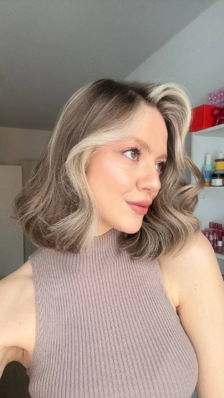 В этот раз я попросила у мастера акцентную светлую прядь спереди и мелкие пряди по всей длине для визуального объема 🤌 Получилось очень нежно и длина комфортная, чтобы делать разного рода укладки 🫶