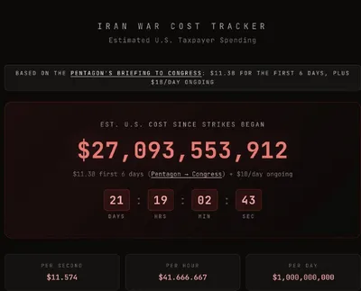 США за месяц потратили на военную операцию против Ирана более 27 миллиардов долларов, следует из данных Iran War Cost Tracker. Этот портал в режиме реального времени ведет подсчет по методике, основа