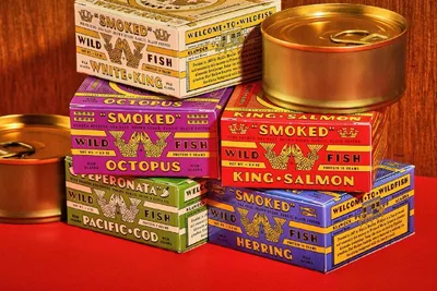 Wildfish. Приятное ностальгическое оформление линейки консервированных морепродуктов. #вдохновение #упаковка