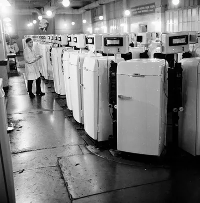 На поточной линии контроля холодильников завода имени Лихачева в Москве, 10 декабря 1961 года. #История #фотографии 📲Канал Полуостров Зил в МАХ 📲Чат Зиларт в МАХ