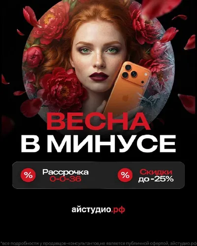 🌸 Весна в минус — твоя выгода в плюс Пока за окном только намёк на тепло, у нас уже жарко 🔥 Скидки до -25% и рассрочка 0-0-36 идеальный момент, обновить свой iPhone. Лови весеннее настроение вмес