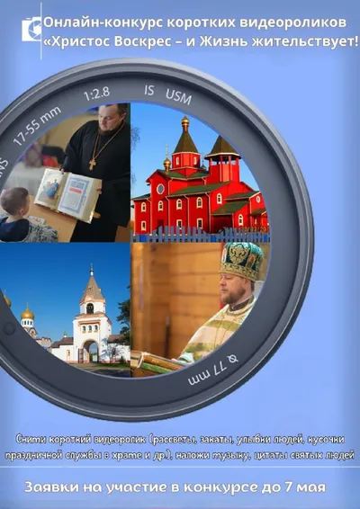 Онлайн-конкурс коротких видеороликов «Христос Воскрес – и Жизнь жительствует!». Снимите короткий видеоролик (рассветы, закаты, улыбки людей, кусочки праздничной службы в храме и др.), наложи музыку,