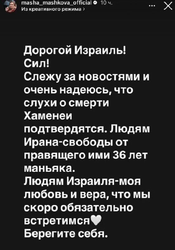 Дочь Владимира Машкова держит кулачки за Израиль 💬 Мы в MAX, Подпишись!