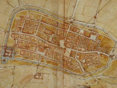 В 1502 году Леонардо да Винчи создал карту итальянского города, которая напоминает современный спутниковый снимок, при этом он пользовался только линейками и транспортирами, измеряя углы дорог. Леген