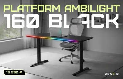 💡 Стол с огоньком (но не в прямом смысле) Platform Ambilight 160 Black — для тех, кому не хватает атмосферы в бэт-пещере. 💡 RGB подсветка на стену — дополнительный вайб для ночных сессий; 💡 широк