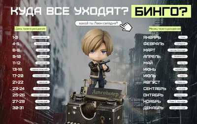 🥸 Каждый из нас немного Леон Админы собрались, позвали пару лороведов по резику и не пожалели мозгов. Какой ты Леон Кеннеди? ➡️ узнаешь в нашей бинго-матрице. «Панчлайнящий мистер Кеннеди» — звучи