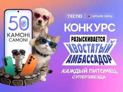 Ищем хвостатого амбассадора, который получит 100 000 ₽ и новый смартфон 🐶 TECNO вместе с Четыре Лапы разыскивает харизматичного амбассадора новой серии TECNO Camon 50! Эти камерофоны готовы ко всему
