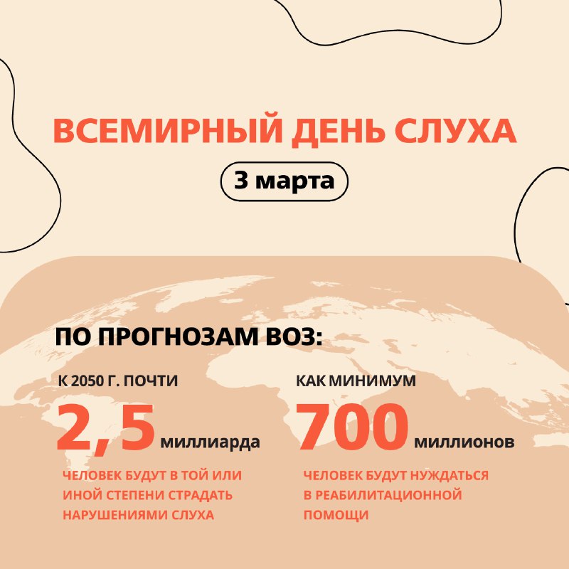 👂 3 марта - Всемирный день слуха Слух играет ключевую роль в общении и ориентации в окружающей среде. В детском возрасте слух особенно важен для развития интеллекта и психики. Заботьтесь о своих уша