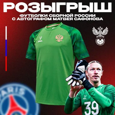 РОЗЫГРЫШ 🇫🇷 🇫🇷 🇫🇷 Он выиграл ЛЧ и множество других трофеев с лучшим клубом Франции. Сафонов – основной вратарь сборной России и ПСЖ. Забирай футболку сборной России с автографом Матвея Сафоно