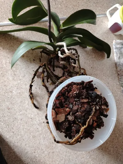 Помогите спасти орхидею, гниют корни. Купила в ашане по распродаже увядшую. Пересадила в грунт для орхидей плюс кора на фетил. Вылезло два новых листа и даже стала на бухать почка на стебле. Но потом