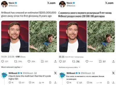 Более $200 млн раздал MrBeast за годы съёмок — об этом он сам написал в Твиттере. Джимми признался, что никогда точно не считал расходы, поэтому реальная сумма может быть ещё больше. Деньги он раз